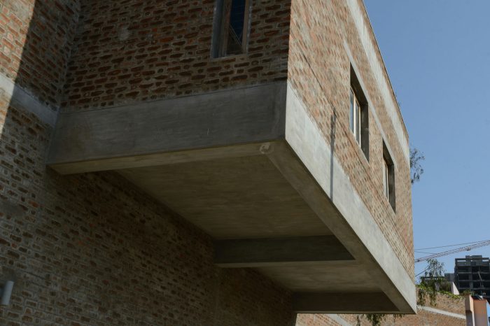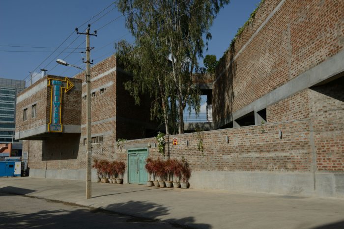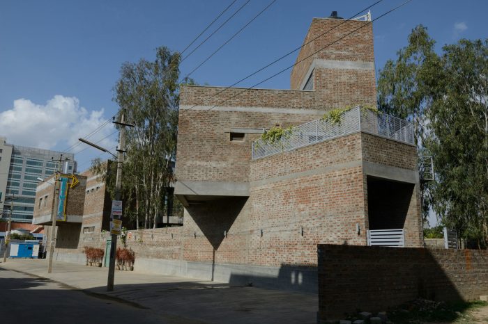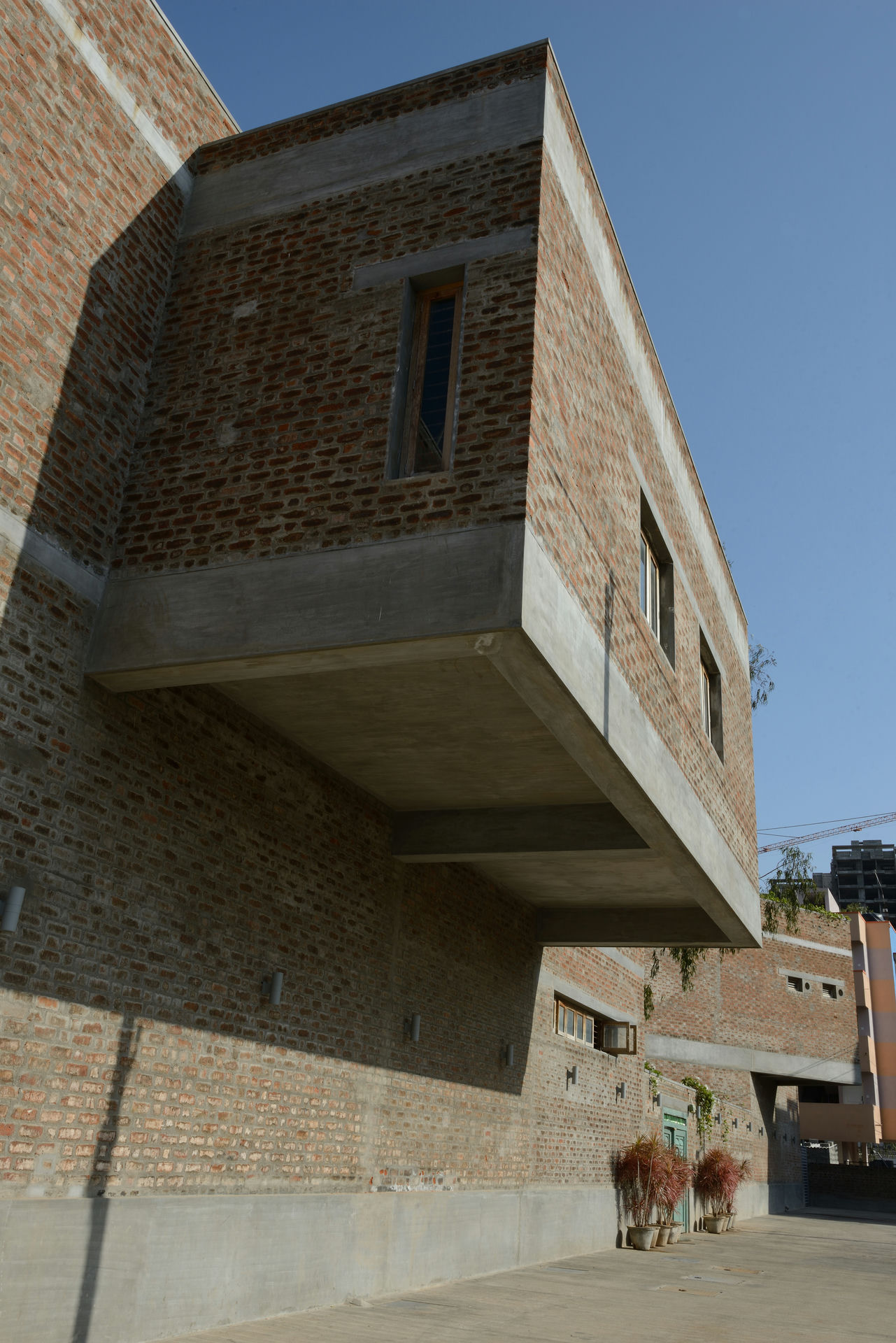 The primary materials chosen were exposed brick and concrete. Regular bricks were used without pointing to give a worn out look as if the building existed from a long time. Further, all services were kept exposed to give an industrial feel to the project.